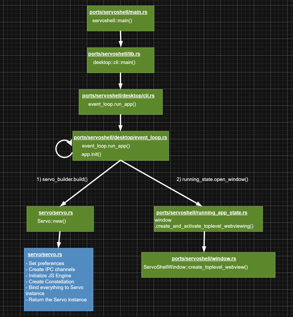 In this blog, we explored how Servo initializes on Windows in a headless environment. This is my first attempt at understanding it, and is by no means 100% accurate.